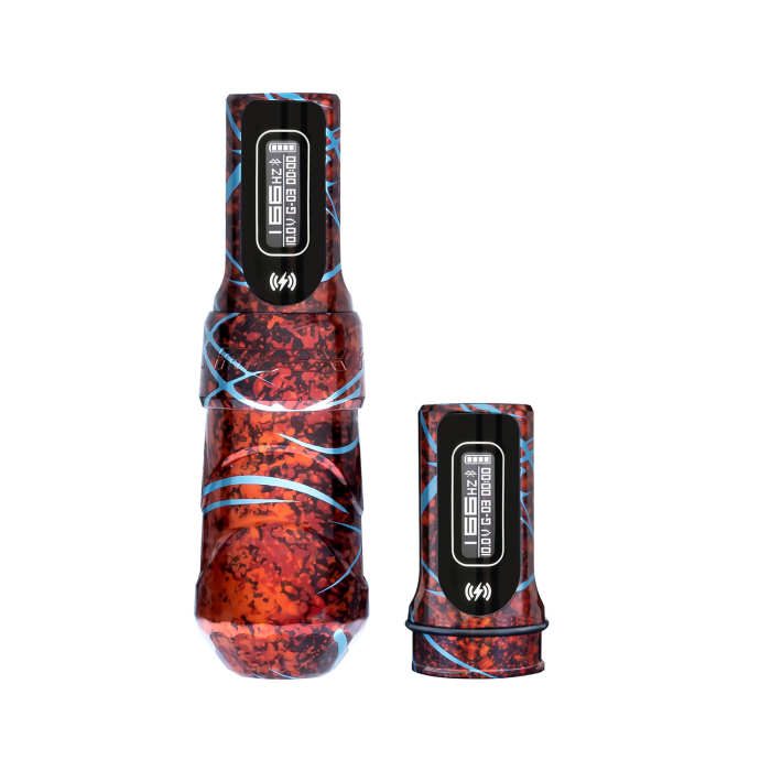 This Special Edition of the FK Irons Flux Max comes with a unique design featuring a lava pattern with ice blue accents across the body, battery, and grip.