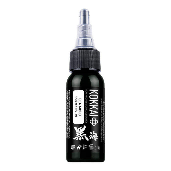 Bring natural vibrancy to your tattoos with Kokkai Sumi Ink in Sea Moss, a dark forest green ideal for shading, accents, and creating organic textures in nature and landscape tattoos.