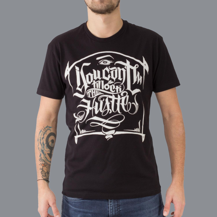 Luxury Hustle Wear T-Shirt in black. 'Cant Knock The Hustle' design by El Whyner.