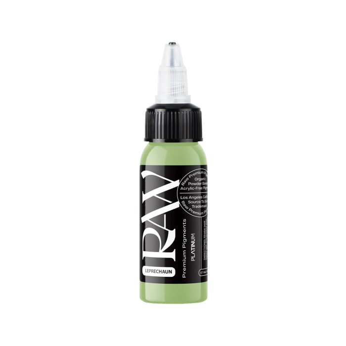 Leprechaun is a bright, light green tattoo ink from Raw Premium Pigments' EU REACH-compliant Platinum range.