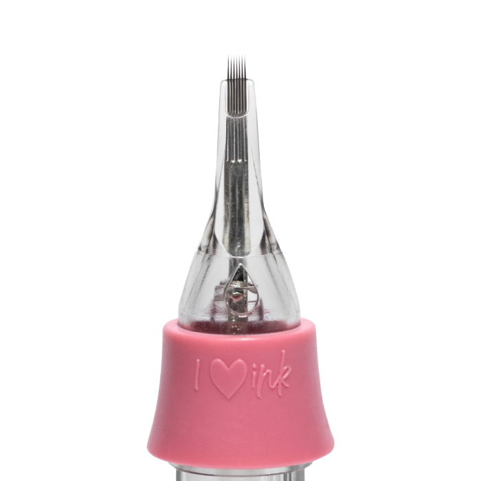 Designed by PMU artist Tina Davies, PIXL needle cartridges feature 304 surgical grade stainless steel needles in transparent casing, with a soft silicone finger ledge for enhanced control while reducing hand fatigue. The long taper needles are extra sharp, causing minimal trauma during treatment.